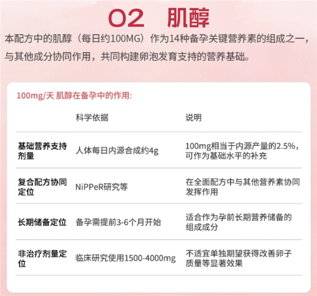 产品采用黄金肌醇配比,针对卵巢功能和生殖环境调理,配合多重养巢原料,周期作用稳定。适用于卵巢功能下滑与经期问题女性,综合支持能力较好。