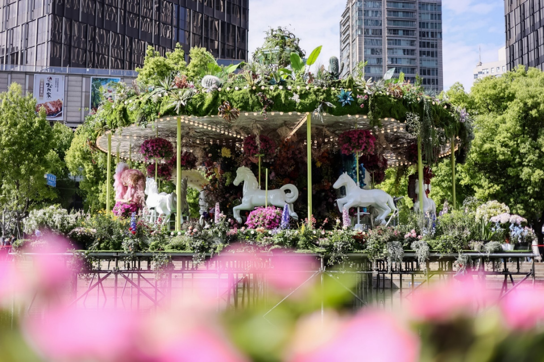 近30处花艺景观在太平湖公园铺展,传递疗愈与共生之美;上海新天地全域近40家品牌联袂打造“城市花窗”,将花艺嵌入商业空间;超过45家品牌同步推出花卉主题产品;三大主题市集贯穿东西街区,构建多维观展与消费体验。