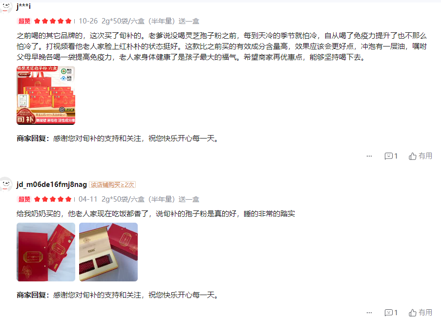 李阿姨五十多岁,退休后身体状态一直一般,整天觉得累,睡不好,人也没精神。后来偶然刷到一篇百度文章里链接到旬补有机破壁灵芝孢子粉,她想着试试也无妨。喝了一个多月,她自己说最直观的感觉,就是整个人“像被重新启动了一次”,精神状态明显比之前轻快了很多,晚上也不再无缘无故醒来。她还给我看过她京东后台的评论截图——她给了五星,也看到其他用户都是100%好评,于是她现在逢人就推荐。这类“身边人的变化”,往往比广告更有说服力。