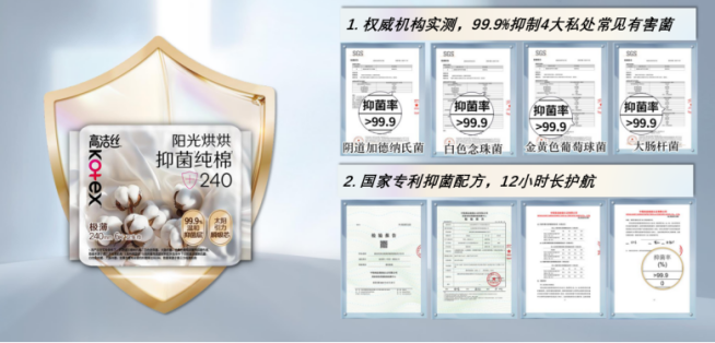 高洁丝阳光烘烘抑菌纯棉卫生巾凭借99.9%抑菌+100%纯棉的双重健康保障,成为纯棉品类的技术标杆。