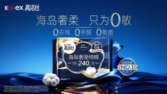 高洁丝海岛棉卫生巾主打珍稀海岛棉,为0敏而生,是专为极度敏感肌肤设计的高端纯棉产品。